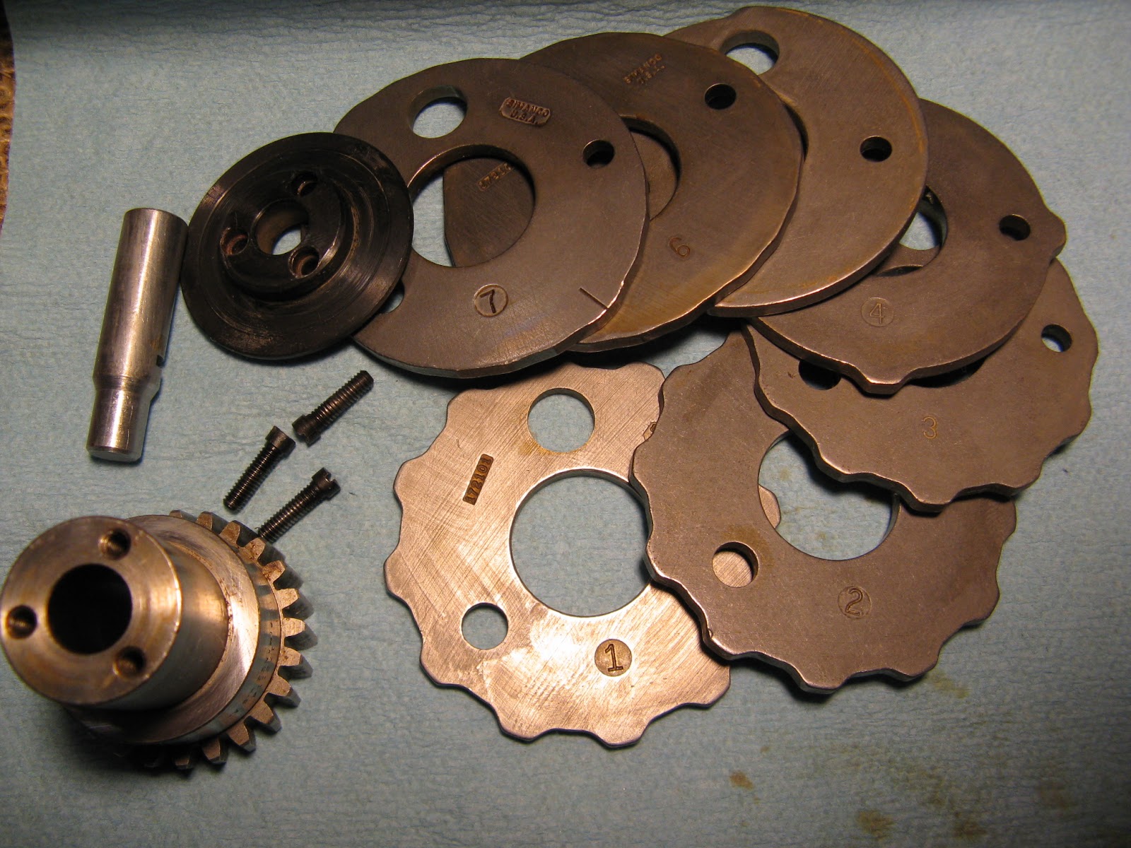 Three small screws on top of the stack hold all the pieces together, but after 50 years of being clamped together, it took some gentle persuasion to get all the cams apart.