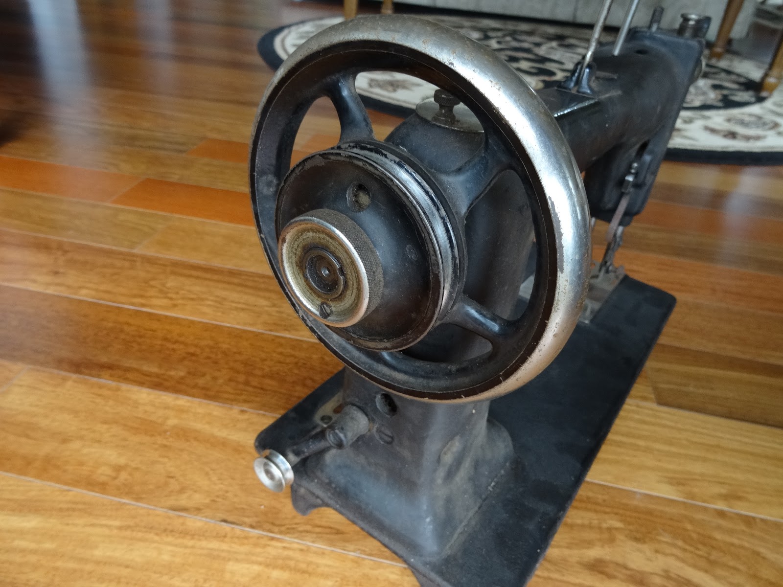 This is a treadle machine, so there's no provision for installing a motor. I may mount this in a wood base and try and hook up a hand crank. Wouldn't that be cool!