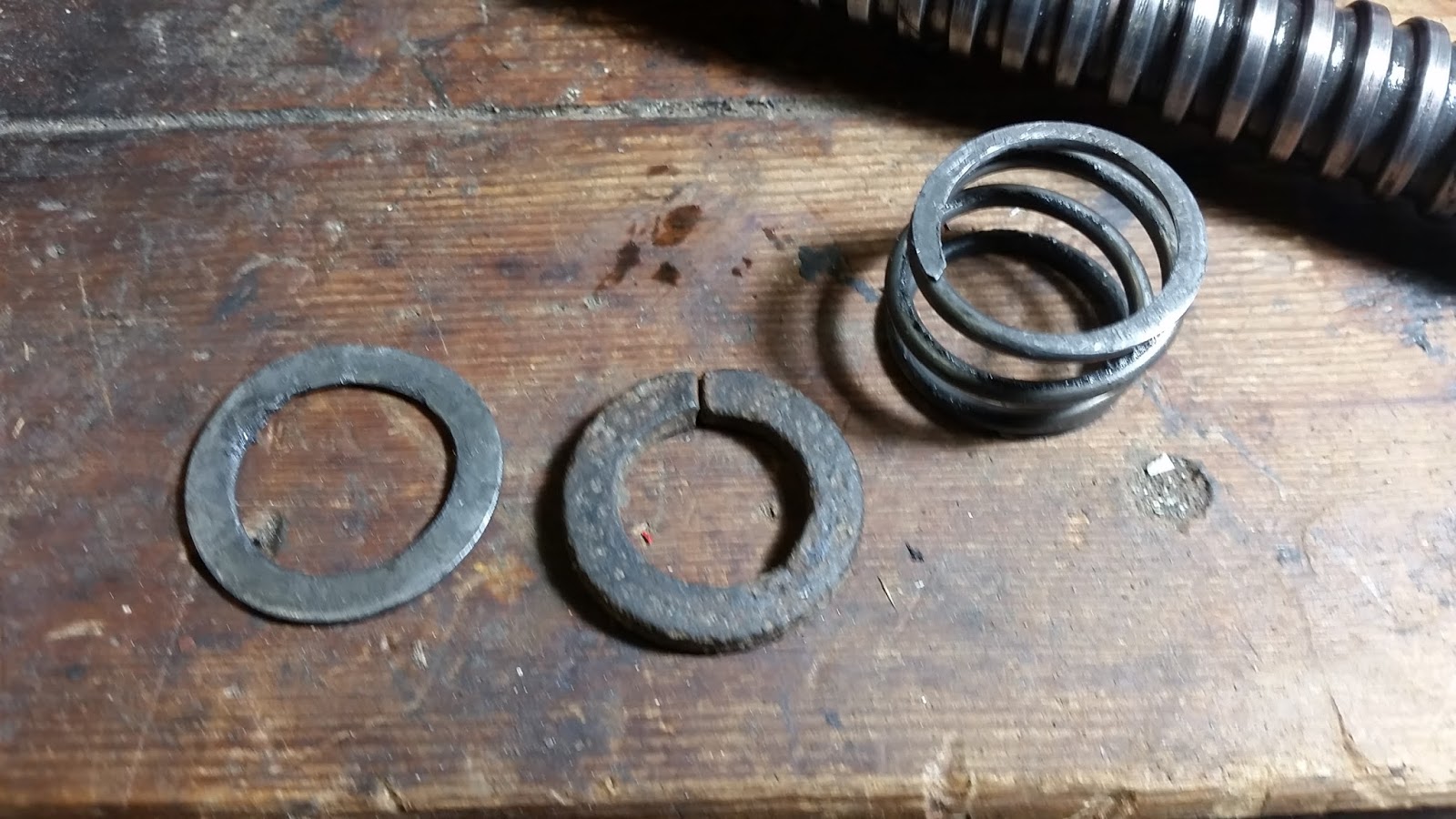 My first job with this vise was to make a new keeper. I found an old lock washer (middle in the photo) that was about the right size.