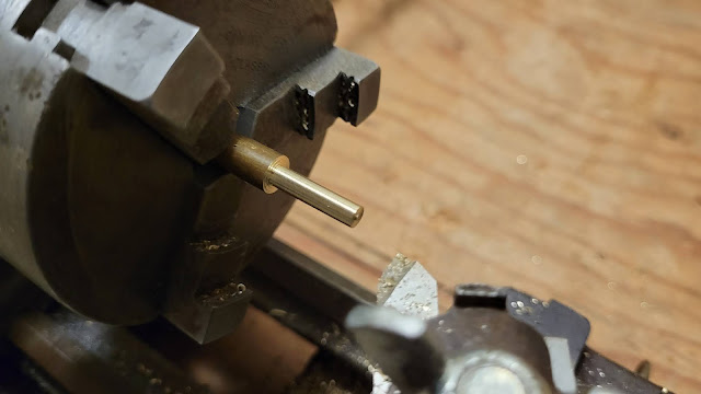 I dug around in the wood pile in the basement and found a piece of 3/4" plywood that I was able to cut a section from to make a base for the lathe and motor. I mounted the motor on a hinge so it was adjustable for the different pulley diameters.